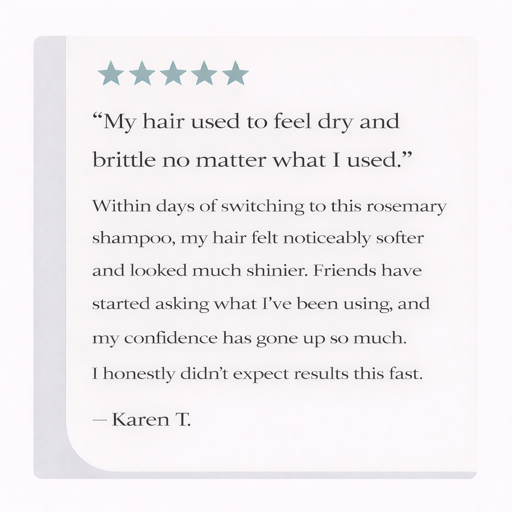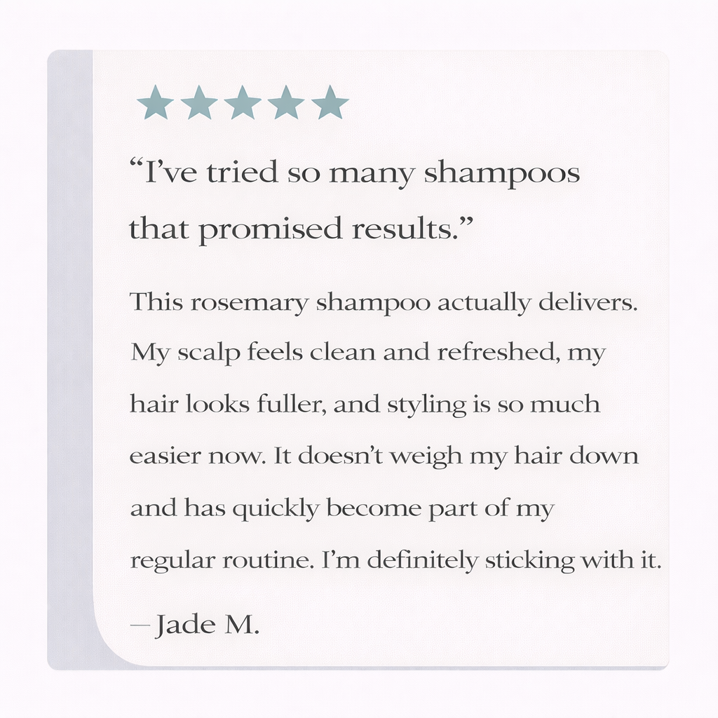 Unlike others, our shampoo uses rosemary extract to naturally boost hair growth and strength, leaving you with visibly thicker, healthier hair without harsh chemicals.